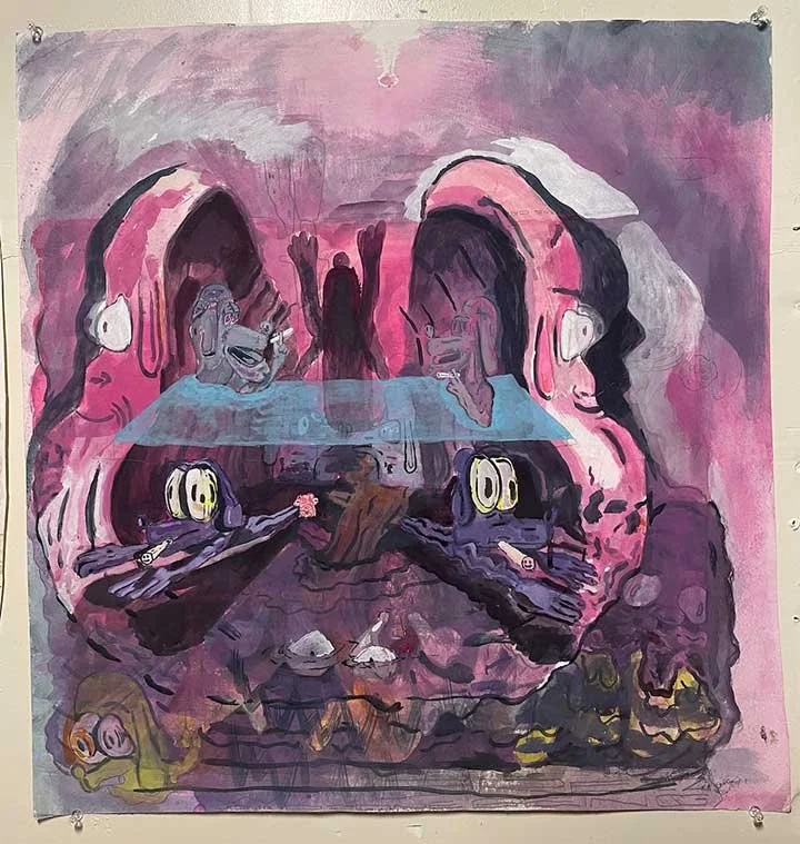 Unbeleivable Ghost, Acrylic and gouche on wood, 23" x 24"