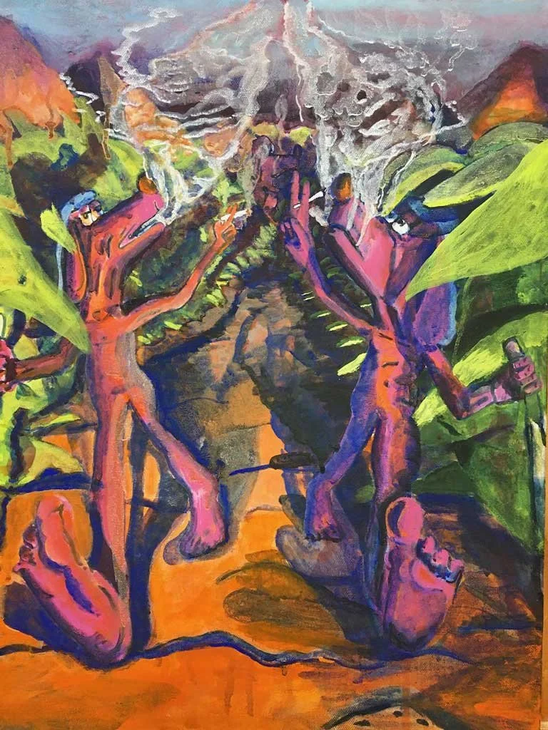 Waterfall of the Mind, gouche and acrylic  on wood, 17.5" x 23"